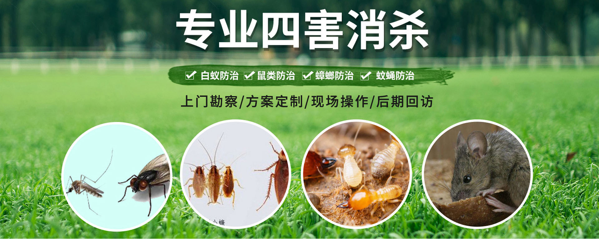 上门检测害虫情况,针对场景和虫害情况定制合适的防治方案,从而达到比较好的治理效果。